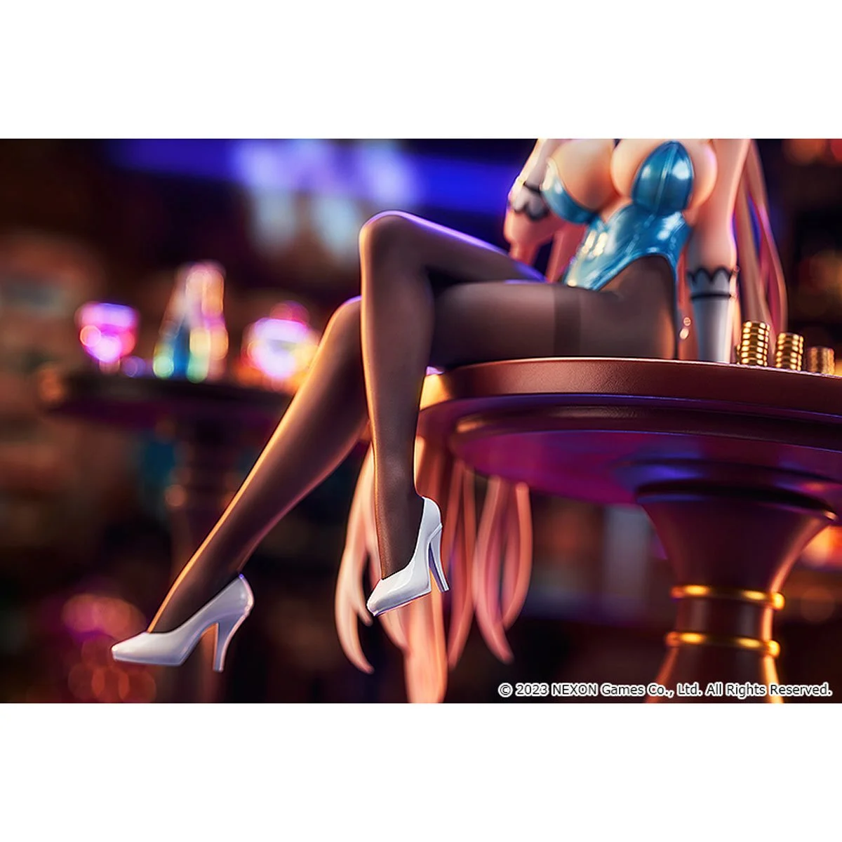 With a focus on achieving the highest quality possible, Asuna’s slim physique and shapely thighs have been modeled in stunning detail. The gold coins and cards scattered across the textured card table create a luxurious atmosphere.