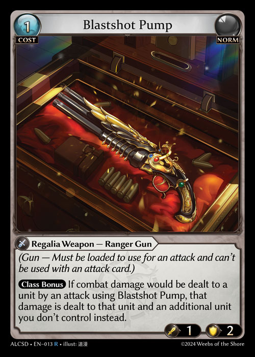 Class BonusIf combat damage would be dealt to a unit by an attack using Blastshot Pump, that damage is dealt to that unit and an additional unit you don’t control instead.